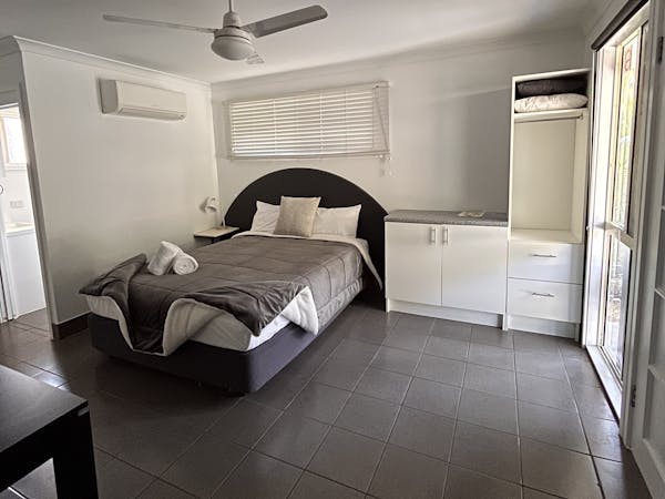 Inside, you’ll enjoy a TV, super-fast WiFi, and a well-equipped kitchenette with a microwave, toaster, bar fridge, and tea and coffee-making facilities. Step outside to your private patio with outdoor seating, ideal for relaxing in the tropical breeze after a day exploring Agnes Water Main Beach or the scenic Town of 1770.
